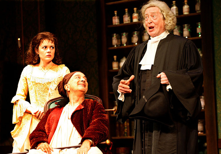 Robinson is suitably grouchy and deluded as Argan, and Imogen Stubbs plays the two-faced wife with wonderful villainy and sulkiness. But it’s Toinette, played by Tracie Bennet (last here in the magnificent End of the Rainbow), who wins over the audience with her natural comic flair. Like a Shakespearean clown, she teases and taunts her master, but ultimately saves him from himself by engineering a ruse to reveal false characters for what they are and open Argan’s eyes to the error of his ways.