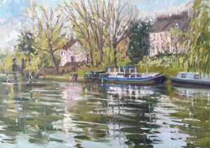 Exhibiting at St Barnabas Press on Coldham’s Road (first and second weekends of July), Sarah Allbrook creates beautiful, impressionist-style oil paintings, often of our local landscape. She mostly paints outdoors, directly in front of her subject, and can be found with her easel and paintbrush year round, come rain, shine or snow.