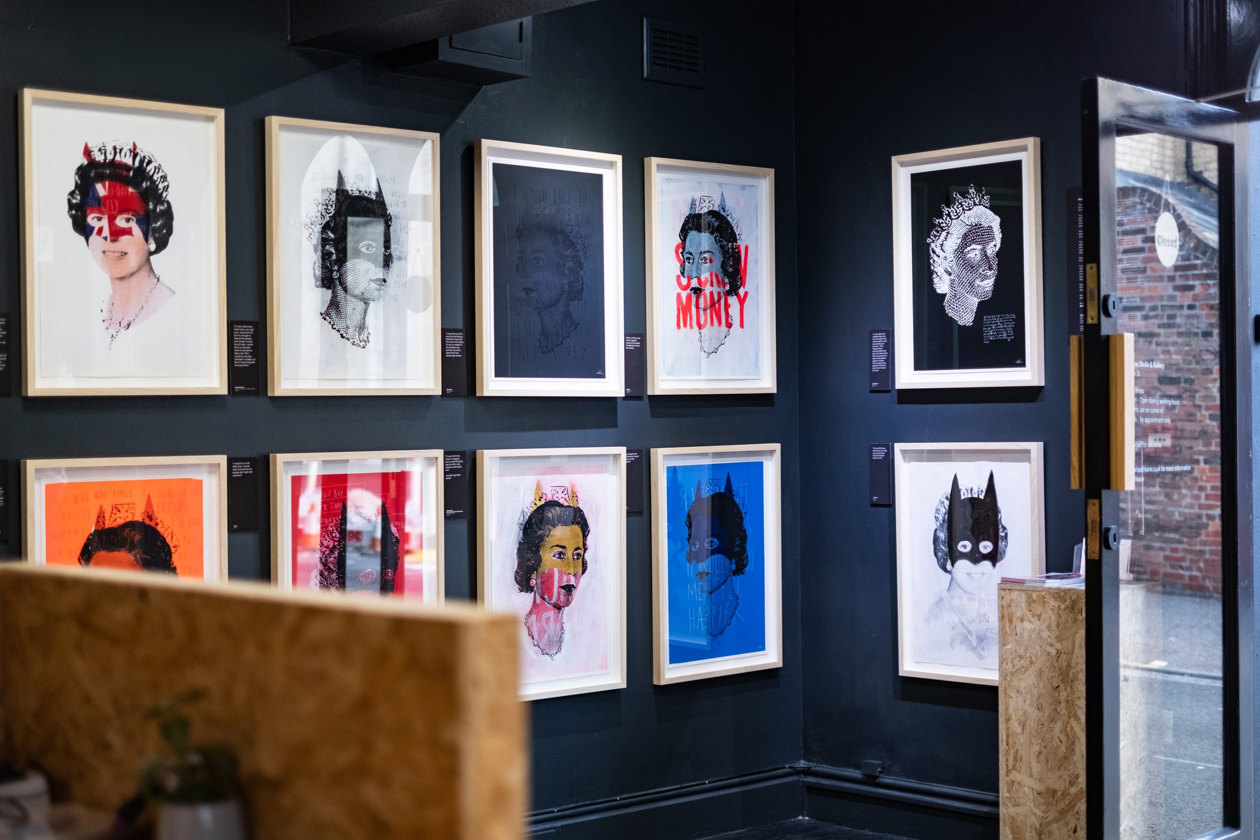 Every piece in the exhibition incorporates a different quotation and is an original piece of art, each depicting the queen’s face masked in some way. All of the original pieces and new limited-edition prints are available for purchase, and a percentage of each sale will be donated to the Single Homeless Project, which aids in preventing homelessness, providing support and accommodation, promoting wellbeing and being a voice for change.