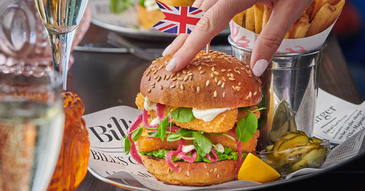 Celebrate the four-day Bank Holiday and feast like a royal with Bill’s special Jubilee menu. Start your day right with breakfast at Bill’s and opt for the Jubilee Royal (£14.95) – toasted English muffin with smoked salmon, spinach, golden poached eggs, Prosecco hollandaise and shavings of truffle. For lunch or dinner, try the Cod Save the Queen (£13.95), which merges two classic British favourites, featuring a crispy cod goujon burger with lemon mayo, crushed peas, pickled red onions and rosemary fries, all wrapped in bespoke branded royal newspaper. There are also some regal tipples on the menu, including The Crown Jewel (£5.95), made with Beefeater Gin, Elderflower, Raspberry and mint.