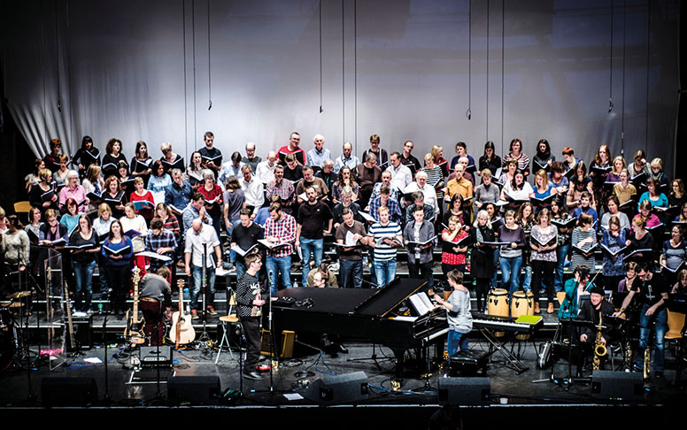 Andrea Cockerton knows this will be a moment to remember. It’s December, 2014, and the Cambridge- based pianist is on stage at the Corn Exchange with her new 120-strong choir and band performing the Proclaimers’ I’m Gonna Be. The audience is on its feet, in full voice, raising the roof. As they reach the chorus, a spontaneous conga breaks out, and their collective voice grows louder still.