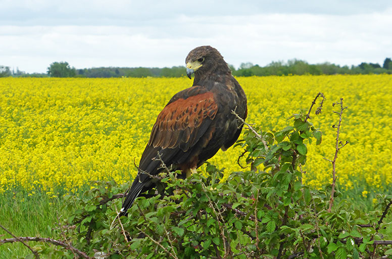 After all, one soaring attraction of the Hawk Walk is just this: getting up close to nature. As we tramp through fields, beneath a stormy sky (Harley showering me with information on this magnificent bird he clearly adores) we stir up all manner of fauna. Astonishingly, the first thing we disturb is a roe deer, which leaps up elastically right in front of us, then away through the high rape field to safety. I can’t help but wonder what else lurks beneath this silent sea of yellow.