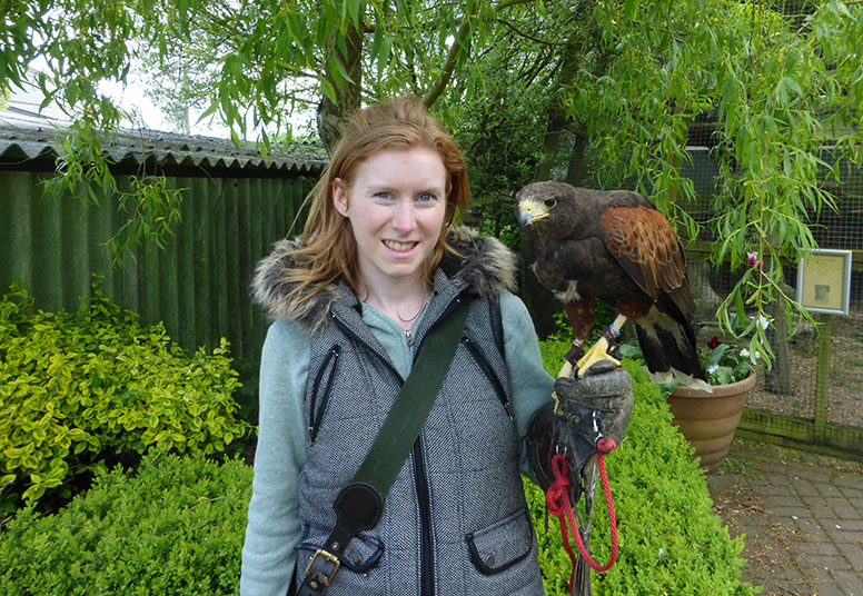 Arriving one blustery May morning, there was time to walk round the outdoor centre and say hello to a few owls (a hooting Tawny and a funny, puffed up Little Owl) before meeting my guide, Harley, and his beautiful Harris Hawk, Lothain, who I’d be taking out today.