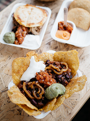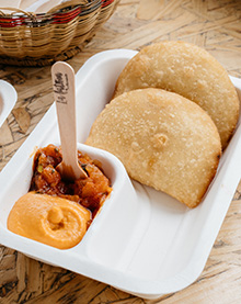 At the same time as the bus was taking shape, the menu was being whittled down from the world of possibilities presented by Catalina and Nelson’s heritage to just three dishes: tostones, arepas and empanadas. The short menu was partly a necessity, caused by the shortage of space in the bus: “It’s impossible to have a huge menu in a tiny kitchen and still make everything fresh every single day,” Catalina says, “so we needed to focus on two or three things that we can do from scratch easily without wasting food. So we decided to do the empanadas, the arepas and the tostones: that’s it.”