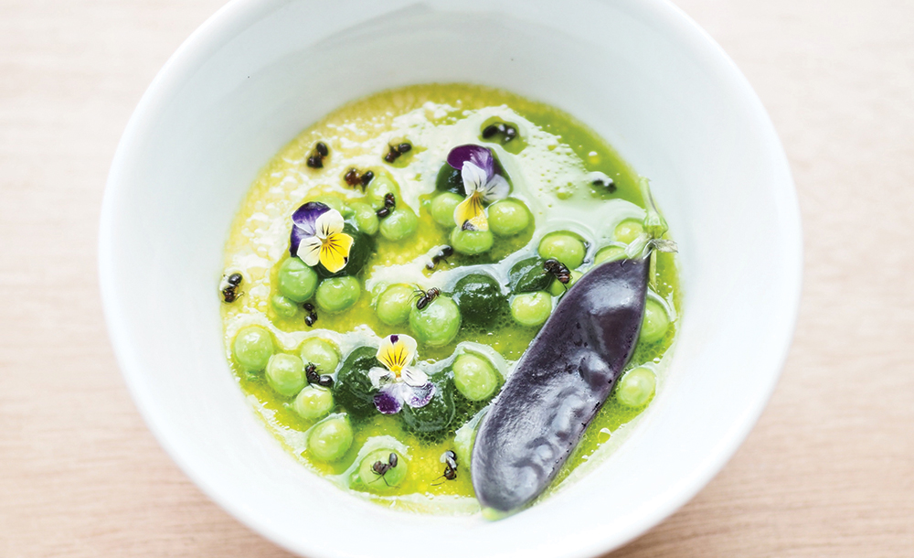 The dish we created in order to highlight their unique flavour is a Japanese set custard flavoured with dashi and then topped with fresh raw peas, juice from the pea pods, a puree of nettles and a single mange tout which is garnished with half a dozen or so red wood ants – several of which I snack on every time I plate up.