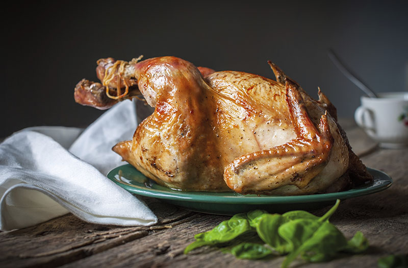 1. GIVE UP ON TURKEY – or at least give up on cooking a whole turkey. You may lose the majesty and ceremony of the carve, but the results are far superior. Instead, break down the turkey into legs and breasts and brine them all in a 7.5-8{b486c5a37ab2d325d17e17d701cb2567b1ecd1814e8ceb33effa2a4f1f171d46} salt solution for 18-24 hours, before rinsing in fresh cold water for a couple of minutes and drying. The legs can be slow cooked, even braised, in advance (which in turn will give you a terrific stock for making gravy along with the bones and giblets), and the meat picked off them ready to be quickly reheated, whereas the breasts will take no more than an hour to cook, freeing up the oven for more important items like potatoes and vegetables.
