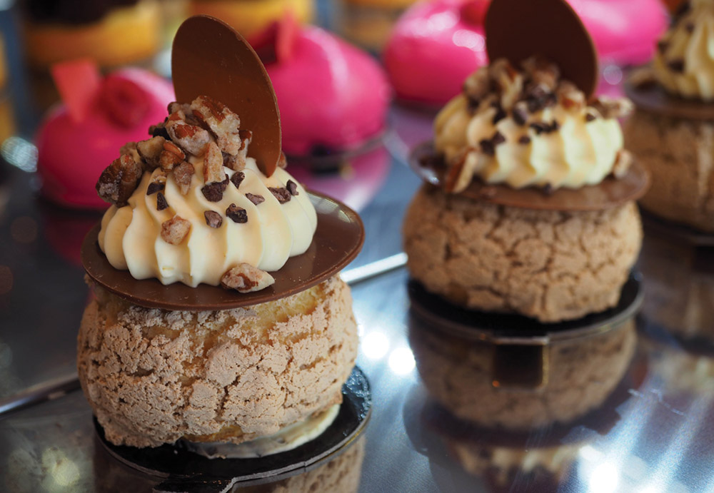 Sample a lemon and raspberry eclair with meringue, or perhaps a pecan praline with milk chocolate choux, amongst myriad other artfully presented offerings.