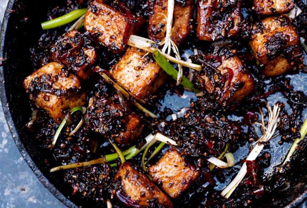 Lentils aren’t the only cliché when it comes to veggie dishes: tofu is another that gets some seriously bad press. I’m happy to admit that until a few years ago, I, too, would snark at anything tofu based. On discovering its true potential though I was fully blown away. My gateway recipe, and one I cook more often than anything else, is Yotam Ottolenghi’s Black Pepper Tofu. Three types of soy sauce and an unholy amount of crushed black pepper are the perfect sucker-punch sauce for the tofu which acts as a vehicle for these punchy flavours. From there it was only a short hop to the glories of a tofu bao – crispy tofu in a steamed bun topped with raw carrot, peanuts, mint, coriander, spring onion and sweet chill sauce. Who knows, you might not even miss the pork belly.
