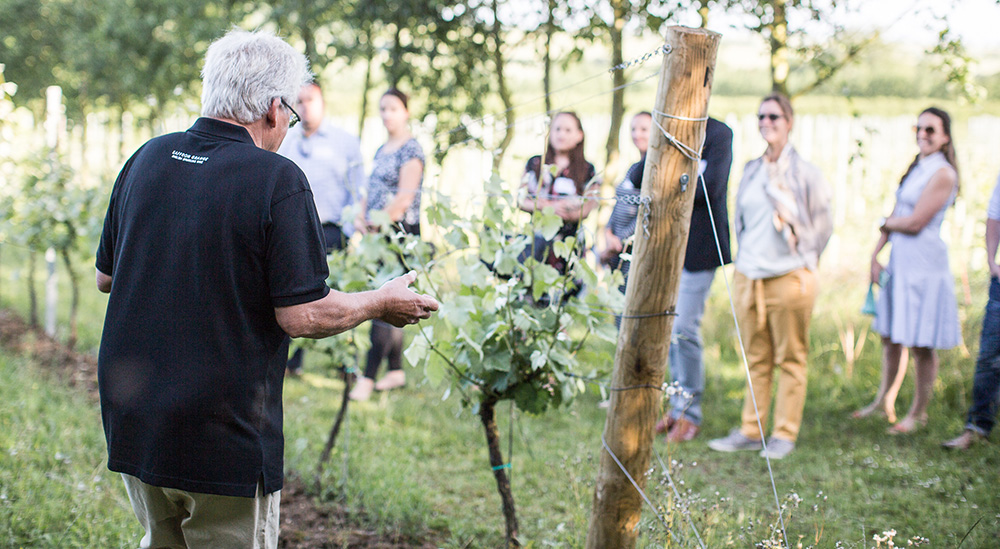 The cooler months of the year are a quieter time for the team: the 2019 harvest completed in October, so the focus now turns to fermentation, which is a risky but exciting time for the relatively young vineyard. “We’re reviewing what we decided to do with the grapes when they were in the field: how many litres of classic cuvée, how many litres of blanc du blancs – and can we deliver what we thought?” says Paul. “To be sustainable, we have to repeat what we created the previous year – but each year, particularly as a developing vineyard, you don’t really know what you’re going to get. It’s all a learning curve: we’ve never done it before,” he smiles.
