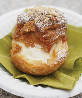 the salted caramel bun. A light-as-air, fluffy ball of pastry, oozing salted caramel sauce and fresh, thick vanilla cream, topped with more caramel and a sprinkling of hazelnuts, these individually handmade buns are both utterly divine and impossible to eat without making an almighty mess.