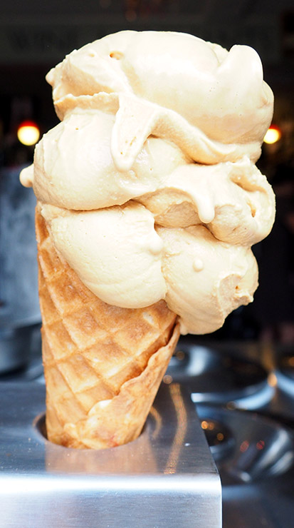 Hunting down Jack and his fabled gelato has become something of a weekend sport for me. Traditionally, this search has often been in vain, and I’ve had to make do with some lesser rival. But as his business grows, and more stockists around the city pop up scooping his peerless iced treats, my hit rate is improving. One such stockist is the Cambridge Wine Merchants’ King’s Parade branch, where a small hatch is now dispensing the good stuff to the hordes of tourists which swarm the area (and the locals who can brave wading through said swarms). My current favourite, and I’d posit, one of the finest gelatos in all Cambridge, is burnt sugar and salt flavour.