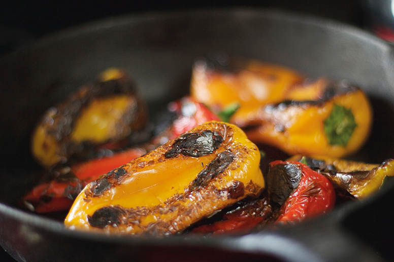 If you don’t have a cast iron pan, the peppers can be charred directly on hot coals.