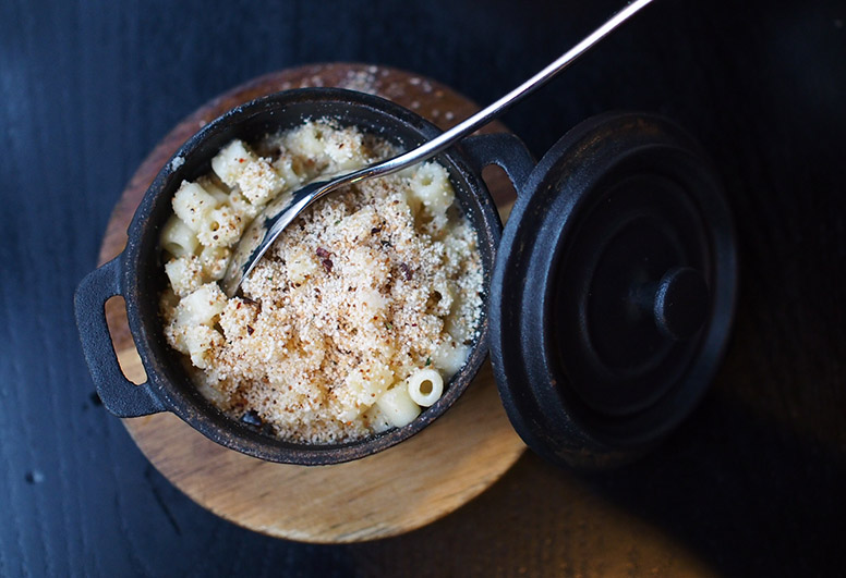 Charlotte says: “CAU’s effort is a side dish, embellished with truffle oil: we’d had a Twitter tip-off that this mac wasn’t as truffley as it claimed to be, but when the waiter lifted the mini lid off the cast-iron dish, a whopping whack of delicious truffle scent rose above our table. Mini, soup-pasta style tubes and a well-judged sauce consistency, plus that excellent truffle fragrance, but the crumb topping could have been a little crispier. Nice presentation too.” 7/10