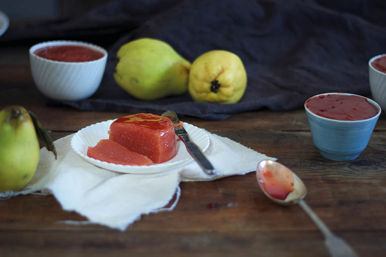Transfer poached quince into a jug and blend into a smooth puree with a hand blender. Return to pot and stir continuously over low heat for a further ten to 15 minutes to reduce and thicken. Transfer paste into sterilised jars or ramekins. Cut discs of parchment paper and cover the surfaces. Allow to set overnight.