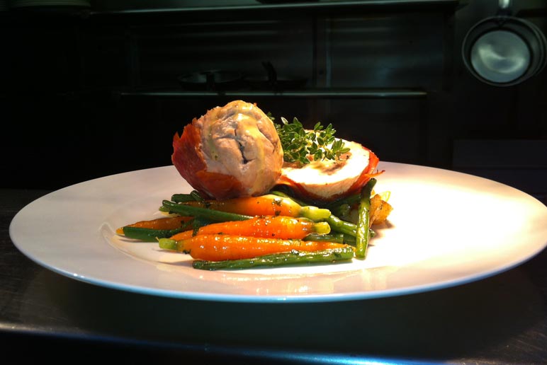 Suitably warmed up, we headed downstairs to claim our table in the restaurant area, opting for a bottle of Gavi di Gavi under the owner’s recommendation (an immensely quaffable, Chablis-esque white which I made a note to seek out in future) and began the task of deciding what to order – no mean feat when presented with a menu as mouth-watering as De Luca’s. After much deliberation I decided to start with the arancini – a Sicilian delicacy and personal favourite of mine which is woefully rare on menus in this country. De Luca’s take on this rice-based dish, with its smoky chorizo, gloriously gooey fontina cheese and roast pepper and cream pesto encased in crispy breadcrumbs, was exceptional. My dining partner was equally pleased with his choice of deep-fried squid, which arrived succulent, perfectly seasoned and accompanied by a deliciously tangy home-made sweet chilli relish. The superb standard was maintained when it came to our main courses. I kept it traditional once more, selecting the handmade ravioli stuffed with goat’s cheese and shallots with sage butter and topped with caramelised red onions. It might not be especially adventurous but the classic pairing of luxurious, creamy goat’s cheese with the rich sweetness of red onions was an indulgent delight. On the other side of the table, the main menu had been eschewed in favour of the lamb and caponata special – and rather special it was too. The rack of lamb was melt-in-the-mouth tender, and the caponata (a sort of Italian ratatouille) provided a medley of sweet peppers, fennel and leeks, all beautifully cooked and bursting with colour and flavour.