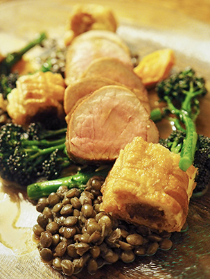 For my main course, I couldn’t resist the slow roast rump of lamb, which was meltingly tender and accompanied by zingy pomegranate, miso aubergine, and heavenly fondant potato, whilst over on the other side of the table, the duo of pork was going down just as well. An inspired combination of pork fillet and sausage roll with sweet potato, purple broccoli and lentils, it was another lesson in balancing flavours for a truly stellar end product.