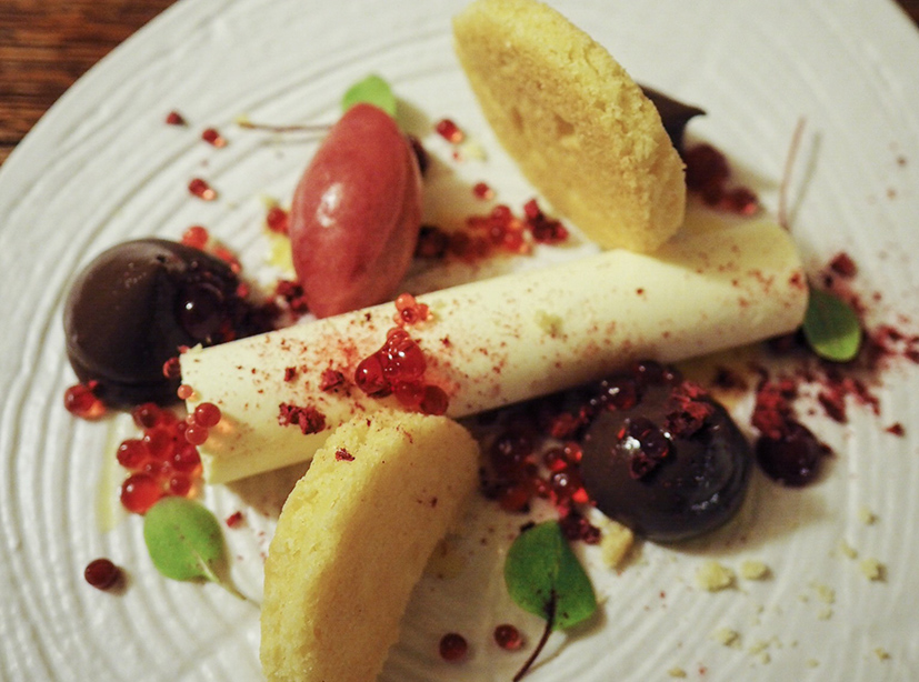More closely resembling a piece of modern art than a pudding, this delicately assembled dish incorporated raspberry sorbet, white chocolate and peach parfait and coconut sable Breton shortbread. Total heaven, the desserts ended the meal on a high note and left us both rhapsodising about the exceptional standard of food this tucked-away pub was delivering. Highly recommended.