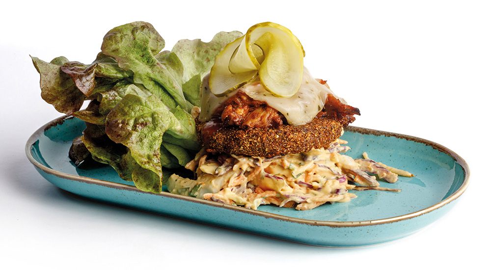 Rather than jumping on the increasingly popular bandwagon for ‘dirty vegan’ food, Alfy sought out a healthier way of creating crispiness. “I’d always wanted to use air fryers. People say that making a vegan burger to taste like meat is stupid – valid – but what’s just as stupid is, ‘Oh, I’m eating vegan, so I’ll put everything in the deep fat fryer’. You go vegan, go more plant-based, so you feel better – and then you end up eating out and everything tastes of dirty oil – you’ve gone back to square one.”