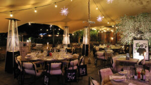 This chic courtyard is fully equipped with firepits, deckchairs and a large, cosy tipi – head along for Mediterranean-style food and a DJ at weekends. For a little more privacy, you can book a table in the unique glasshouses on the lawn, dining under the stars in style.