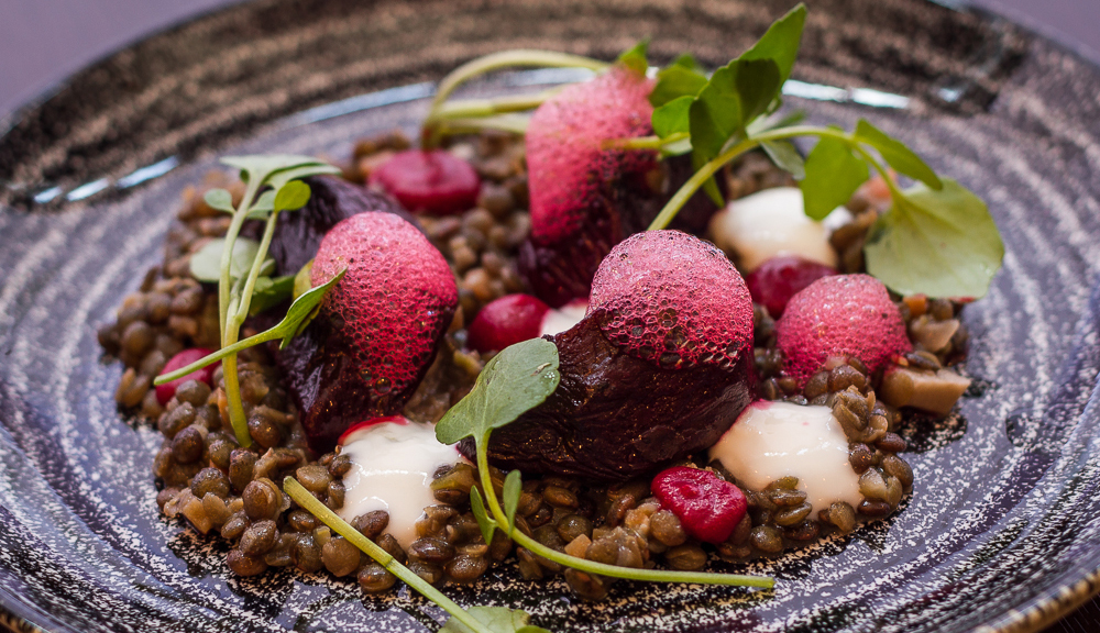 For mains, enjoy artfully presented culinary masterpieces such as seared scallops with black pudding soil, pea purée, crispy pork belly and mint foam.