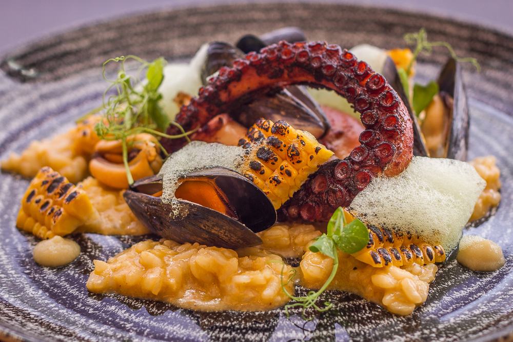 For mains, enjoy artfully presented culinary masterpieces such as seared scallops with black pudding soil, pea purée, crispy pork belly and mint foam.