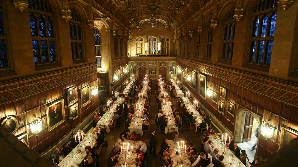 The college offers a range of options, from the intimate Saltmarsh Rooms which boast views of the Chapel and lawn, to the magnificent Hall, which can accommodate up to 294 people. Bespoke private dining packages are available for groups of ten or more.