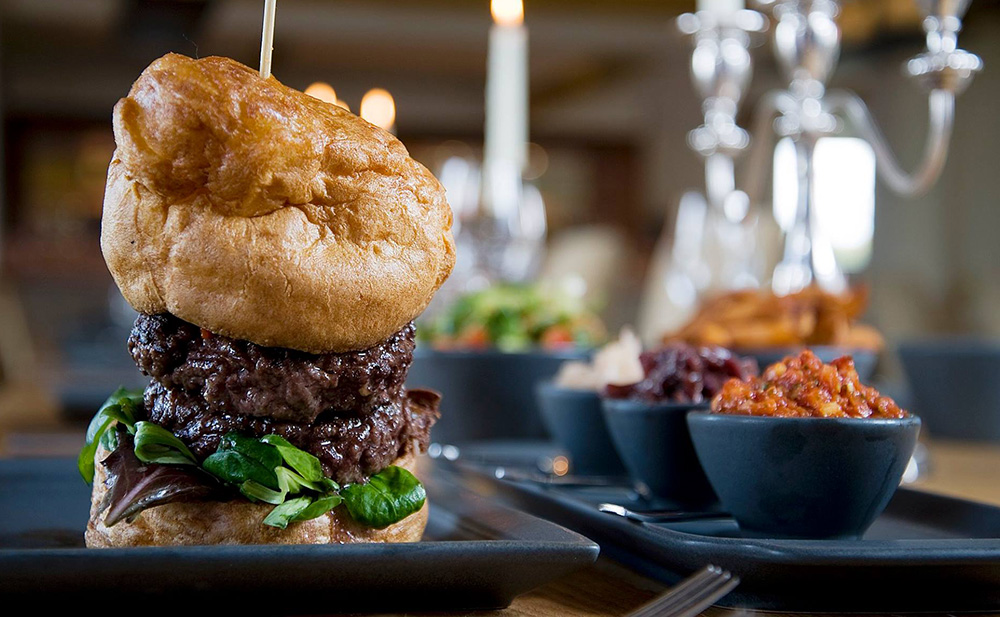 Stylish and spacious, Cambridge Canteen in Whittlesford specialises in gigantic gourmet burgers (above). They’re known for their inventive creations and their Ultimate Christmas Burger is no exception.