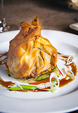 For mains, they’re offering a huge hunk of meltingly tender slow-cooked beef cheek, served with Jerusalem artichoke puree, caramelised carrots, mandarin zest and grated dark chocolate (heaven!) and a modern take on the classic roast turkey, which is a ballotine stuffed with spinach, potato dauphinoise and thyme jus.