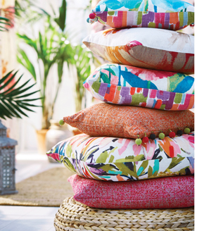 Renowned for its luxury, modern fabrics, Harlequin’s Amazilia range has large-scale tropical flowers, hummingbirds, stylised foliage and botanical references at its heart. Scatter a few cushions for a burst of colour. The brand’s Fauvisimo collection is based on the vibrant, bold colours of the Fauvist art movement. Overblown peonies, foxgloves, tulips and sprays of blossom are contrasted with abstract stripes and ombré colours. Curtains and chairs in these fabrics will give a summery feel all year.