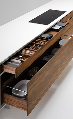 “Some of the key features that are increasingly in demand include concealed power points, open shelving, free-standing pieces, and wonderfully flexible designs such as the K7 adjustable kitchen island, which morphs from a kitchen countertop to a dining table, sideboard or bar, a the simple touch of a button.”