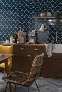 If dark cabinets feel like too much of a commitment, however, you can easily add personality with pops of colour through flooring, tiling and surfaces instead. Ideal for splashbacks or feature areas, for instance, the Syren Midnight Blue tile, available from Topps Tiles’ Cambridge store, has a Moroccan feel and draws upon mermaid mythology, taking inspiration from their jewel-toned scales. The Astrea Ink Blue tile, meanwhile, has a crackle glaze and is perfect for creating an inviting atmosphere.
