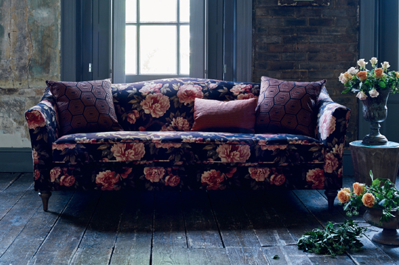 Jim Carlile, managing director at Ely-based Reeds Furniture and Bed Centre, comments: “Floral upholstery is on-trend this season. Mix-and-match prints with plain pieces to get the balance right. Dark prints – such as navy and rose florals on velvet – are of the moment and are a hip version of the ‘grandma chic’ look. Choose bold, wild blooms over small ditzy prints for a modern feel and show these off on a statement piece of furniture for maximum impact.” A case in point is Sofa Workshop’s Ives chair, which is now available in Liberty’s Secret Garden fabric, a jewel-toned, floral velvet. Match it with Besslink & Jones’s roses chandelier for a dramatic feel.