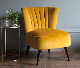 Sofa Workshop’s Alba Chair in Turmeric velvet (right) gives a visual appeal