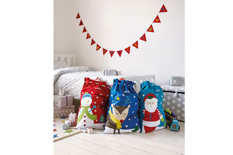 This Image: Colourful, personalised gift sacks, £32, Great Little Trading Company (0344 848 6000; www.gltc.co.uk)