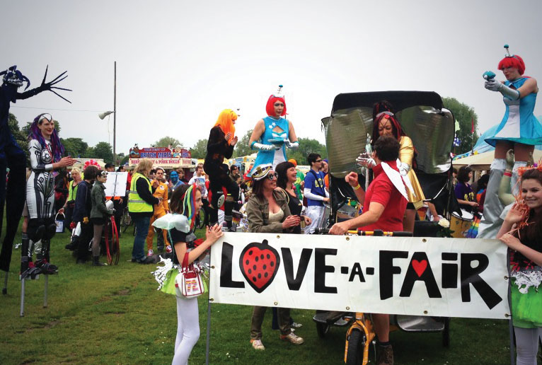 The day’s events kick o with the traditional Strawberry Fair parade, a colourful carnival which snakes its way through the town. “The Strawberry Fair parade leaves Midsummer Common at about 10.30am, then goes around the town, through Market Square, and back to the common. That kick-starts the fair effectively, and has been an integral part of the event for a number of years. Anybody and everybody can take part in the parade, and community groups are encouraged to come along,” comments Kam.